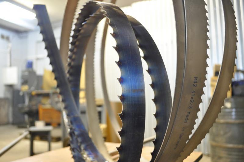 - с гибкой основной частью полотна и закаленным зубом, твердость резцов – около HRC 65. При производстве используют ленту из углеродистой стали, нарезают на рабочей кромке зубья, подвергают закалке только вершины режущих частей. При этом твердость ленты составляет HRC 30-33, сохраняется ее гибкость. Этот тип ленточного полотна используется чаще всего из-за достаточной точности при роспуске заготовок, высокой производительности работ;